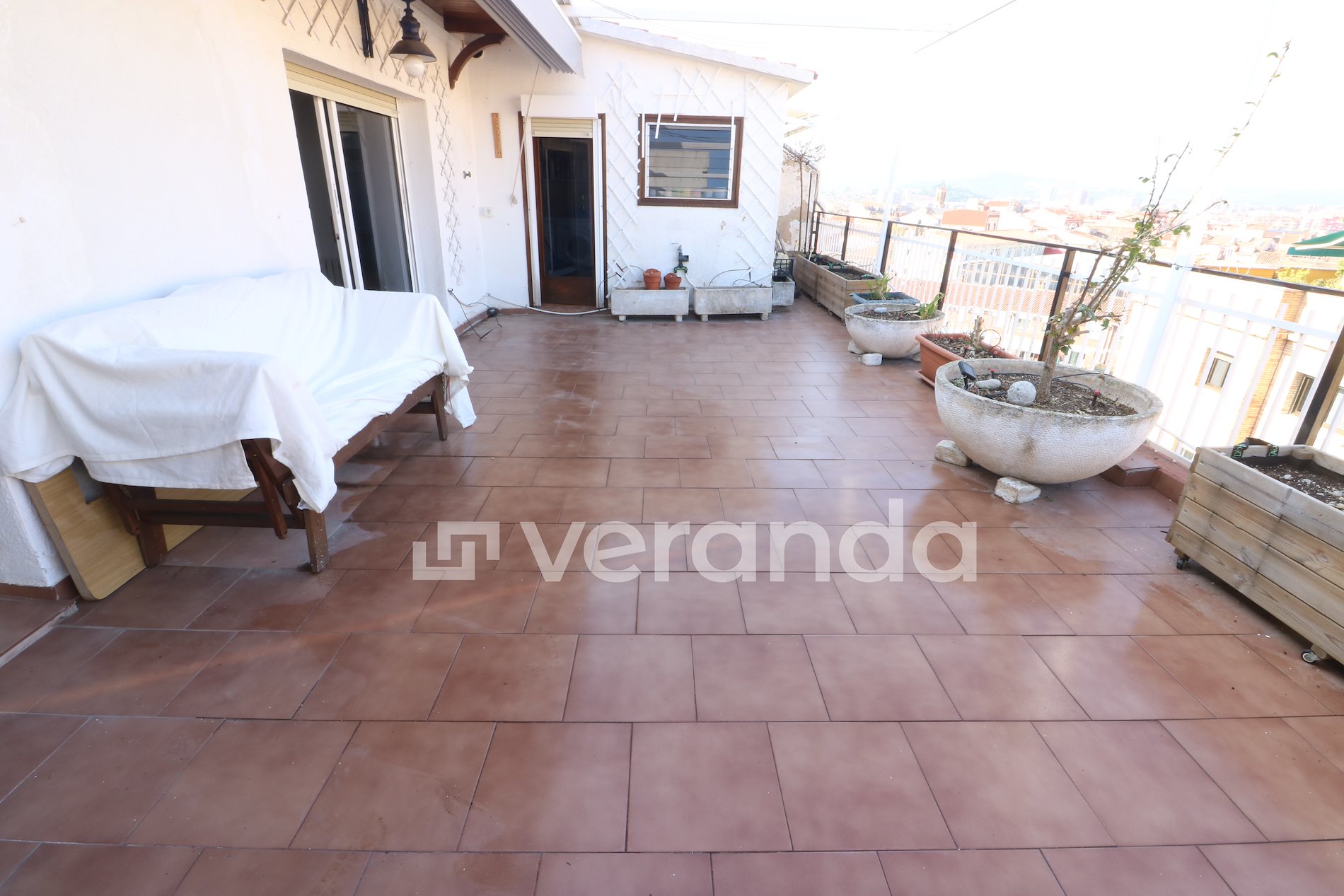 Atico único en Ripollet en zona centro de 188 m2 con terraza de 37 M2 , 5 habitaciones , 2 baños y Cocina office de 17 m2. El ático está situado en planta sexta real con orientación sur y ascensor . La vivienda tiene dos fachadas. En fachada principal zona de cocina, terraza y salón comedor y en fachada posterior habitaciones. Entrada a la vivienda a un amplio recibidor distribuidor. Sala de estar comedor de 35 metros, con acceso a la cocina. La sala de estar tiene dos zonas para comedor y sala de estar. En el centro del salón tenemos una llar de foc y 2 ventanales para salir a la terraza. Terraza de 37 metros con toldo instalado tipo pérgola. La terraza dispone de buenas vistas y con orientación sur. A la cocina se accede por el vestíbulo y desde el comedor, tiene 17 metros distribuidos en una zona de office y otra zona de mobiliario para cocinar. La cocina tiene el mobiliario renovado con electrodomésticos, campana extractora, vitrocerámica de inducción y horno. Desde la cocina salimos a un lavadero de 7 metros que comunica con la terraza. Desde el vestíbulo de entrada se accede a través de un pasillo a las habitaciones y baños. Habitación 1 despacho de 4,50 m2. Habitación 2 de 9 m2 con armario empotrado y galería cubierta. Habitación 3 de 13 m2 con galería cubierta. Habitación 4 de 16 m2 con armario empotrado y salida a balcón galería de 6 m2. Habitación 5 de 16 m2 con ventanal a fachada posterior. Cuarto de baño reformado con plato de ducha con ventana exterior. Cuarto de baño amplio de 6 m2 con bañera y ventana exterior. Pavimento de parquet de tabla de roble en forma de espiga. Calefacción con caldera de gas natural y radiadores. Ventanales de aluminio lacado blanco con vidrio climalit en salón comedor y habitaciones 1-4-5. Instalación eléctrica renovada. Situada en zona centro próxima a zona de comercios, servicios y transporte público.